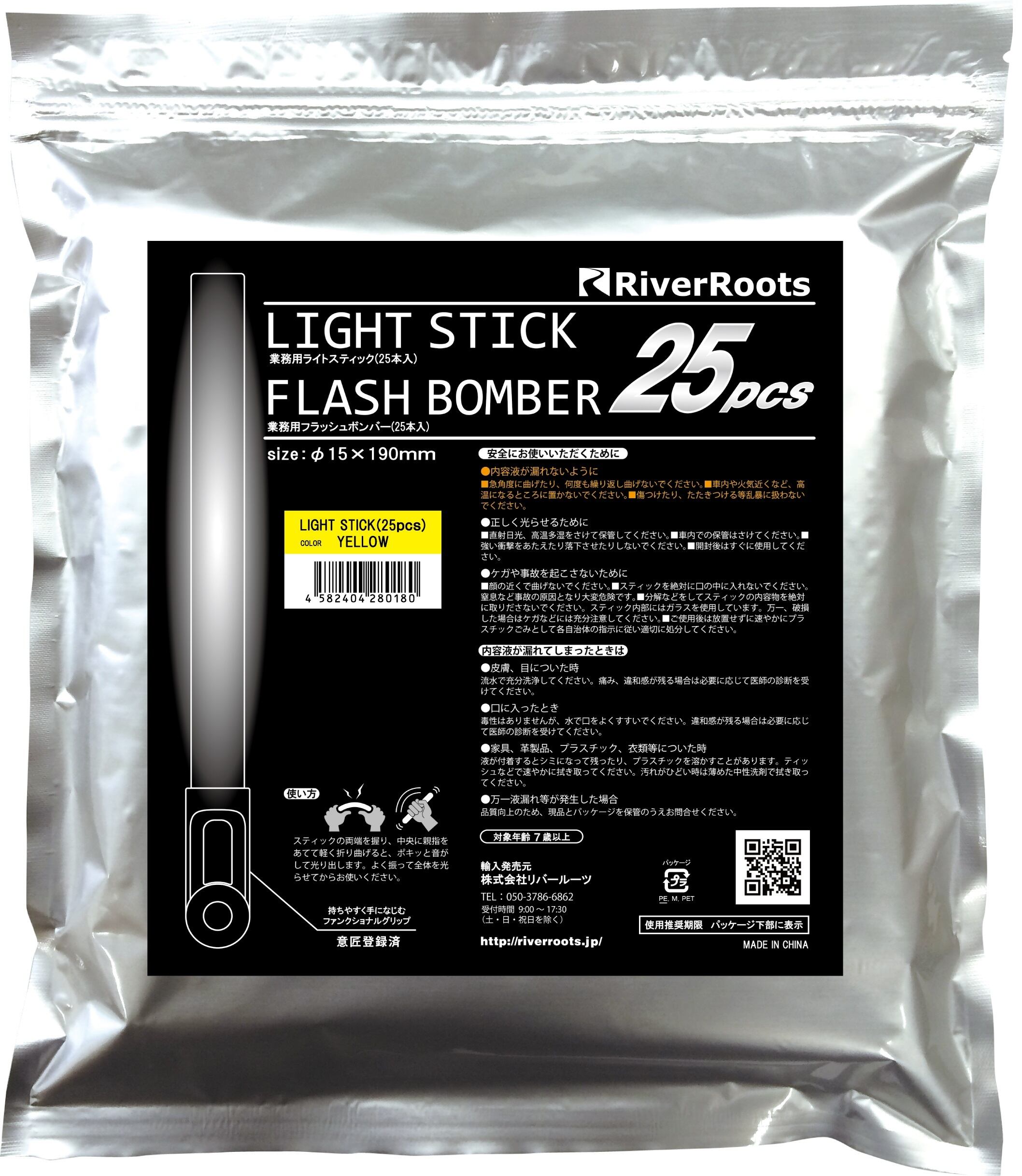 ライブ・イベント・アウトドア・防災の必需品! あらゆるシーンを盛り上げる定番ライトスティック。持ちやすく手になじむファンクショナルグリップ(意匠登録済)を採用。リバールーツこだわりのグリップです。